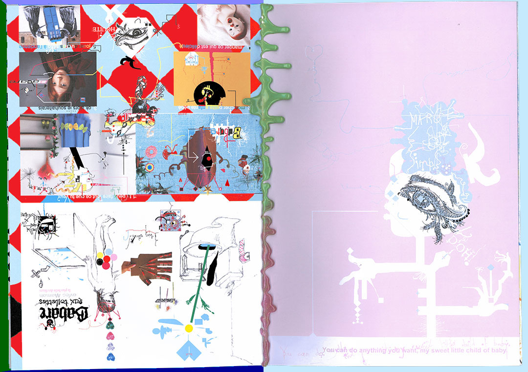recycled paper outside / laminated shinie paper inside (binding process very compless)